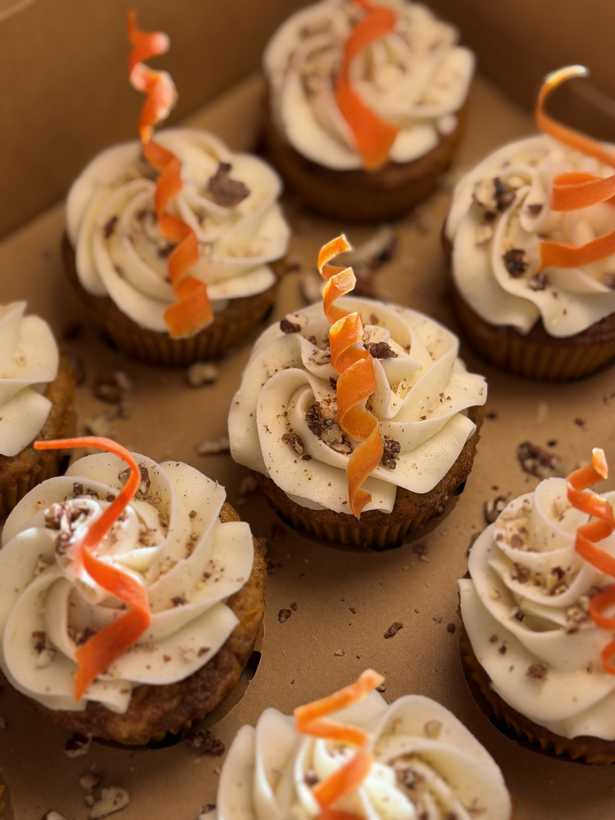 Moist and fragrant with warm cinnamon, nutmeg, and a touch of clove, these carrot cupcakes taste like a hug from the oven. Freshly grated carrots add natural sweetness and texture, while the cream cheese frosting brings that classic tangy balance. Every bite is soft, comforting, and just the right amount of nostalgic — a modern take on a timeless favorite.